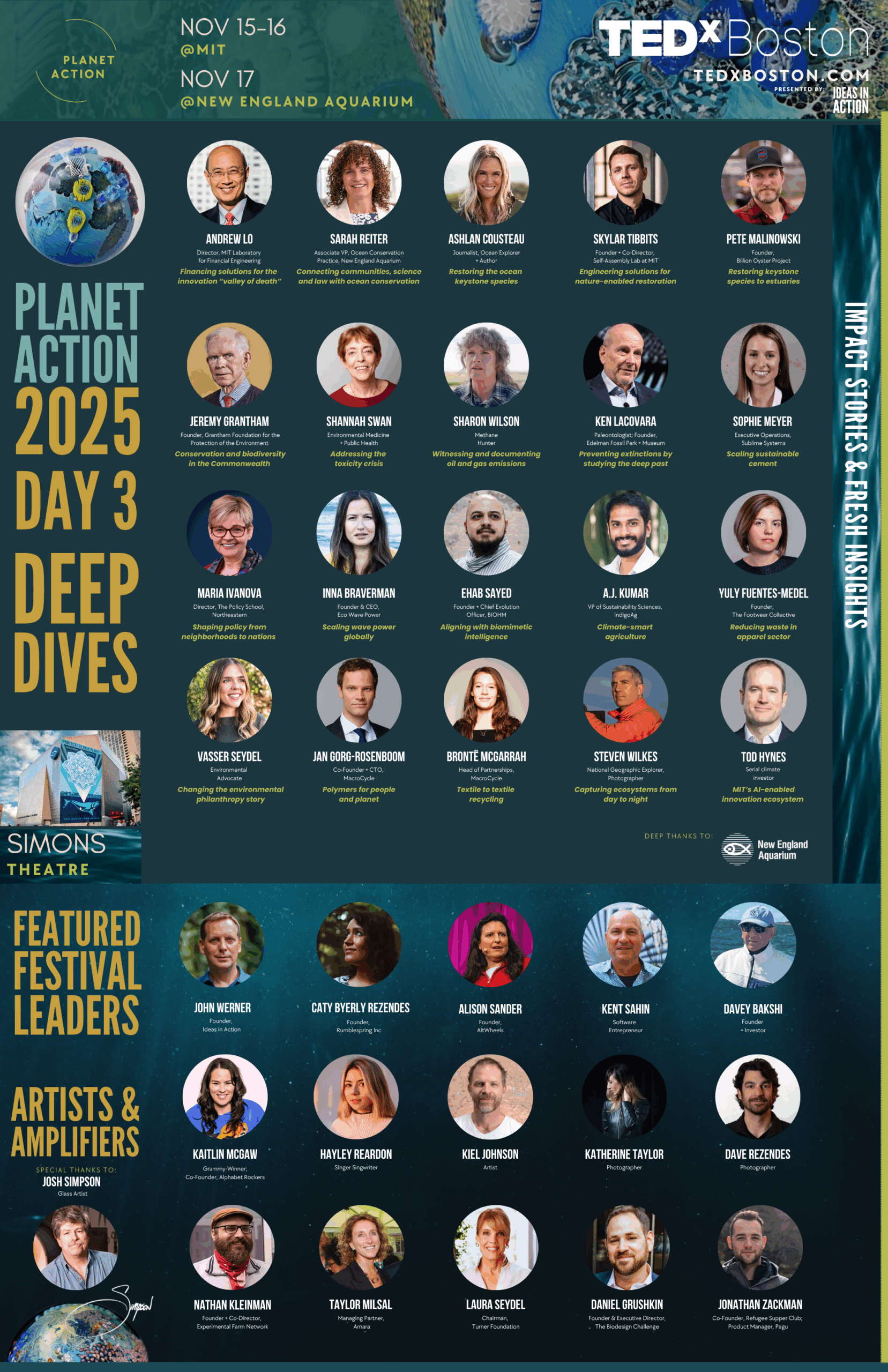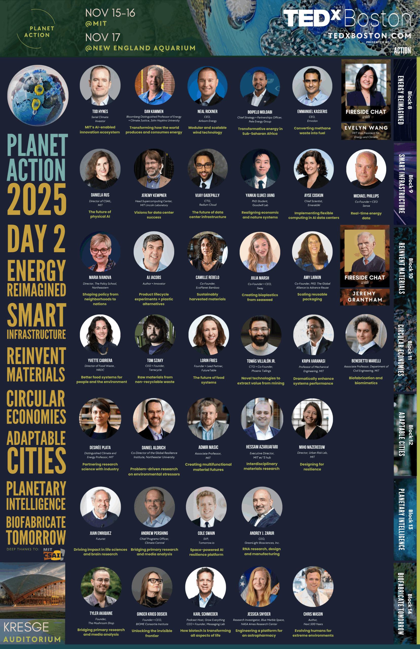 We imagine a world where collaborative effort across sectors leads to innovative solutions that can short-circuit traditional development and adoption timelines. Where clearly conveying the idea, the actions required, and scaling potential through vivid storytelling is critical but not sufficient. We must put ideas in action. Our anchor event will bring the best and brightest innovators to Boston to activate the MIT campus. MIT Faculty advisors Daniela Rus, Yet-Ming Chiang, John E. Fernández, and Andrew Lo have joined a special Advisory Board to create a connective tissue across campus.